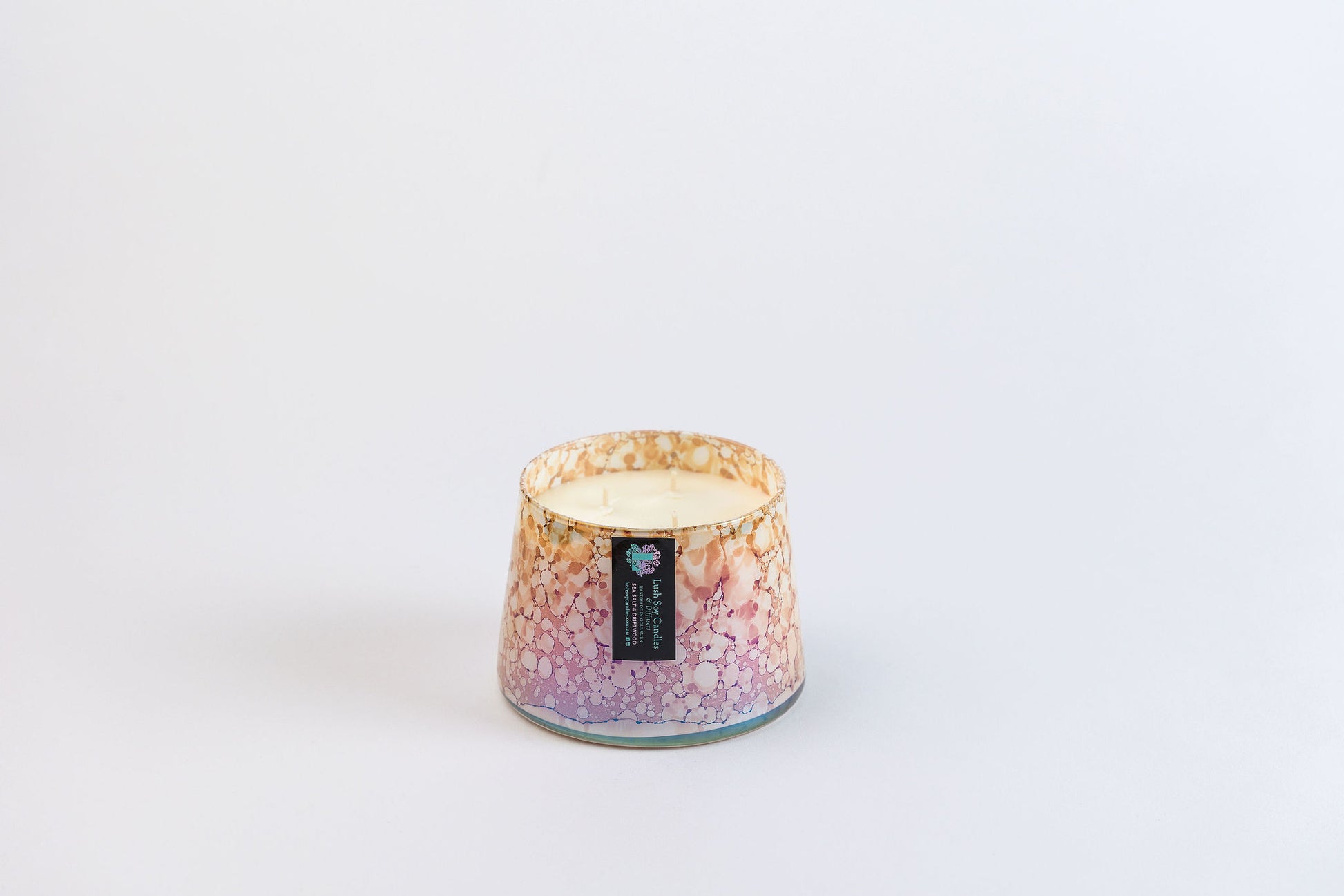 Crafted in a gorgeous marbled vessel with a mesmerising blend of yellows, the Molly Range is as much a design statement as it is a candle. With three wicks for an even burn and an enhanced fragrance throw, each candle radiates warmth and sophistication. Boasting an approximate burn time of 90 hours, it’s designed to offer long-lasting ambience and scent.